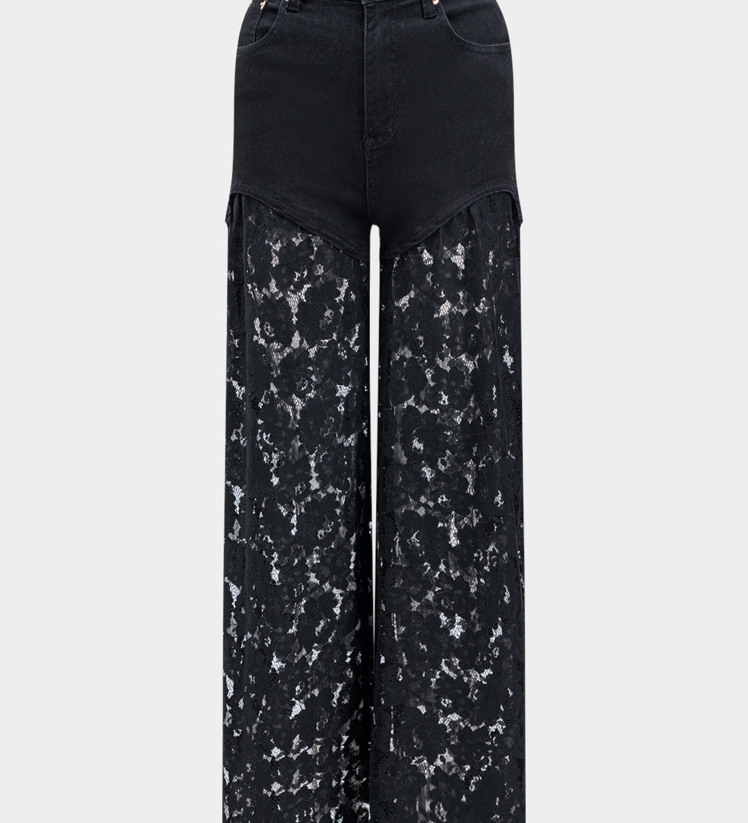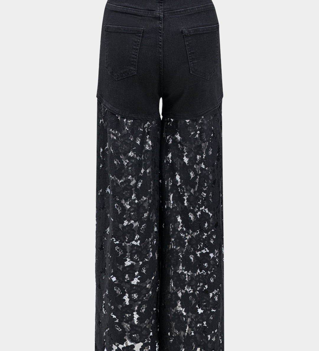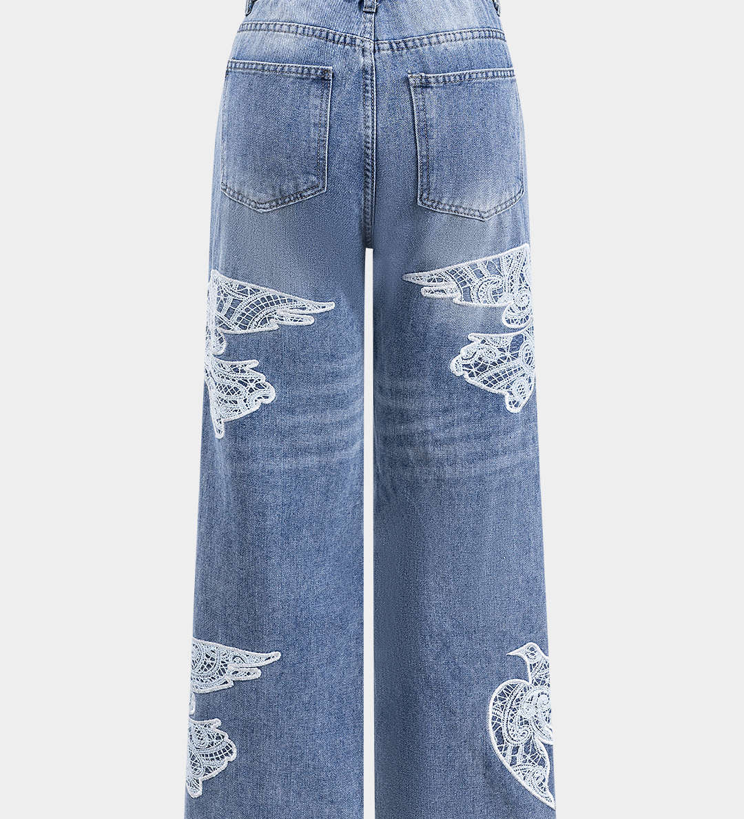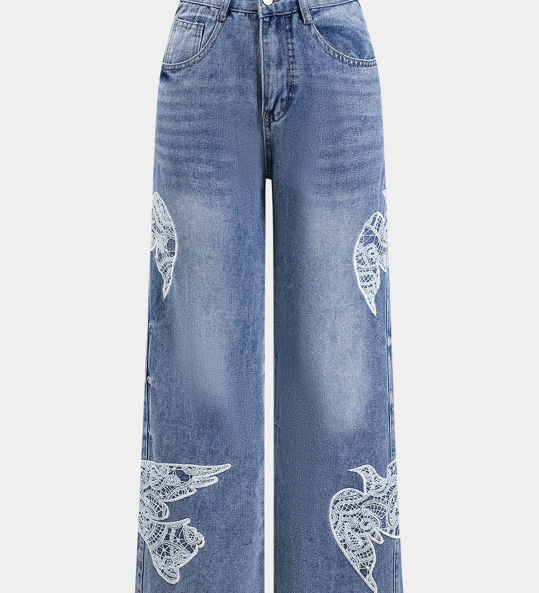 Elysia Lace-Embroidered Wide-Leg Jeans