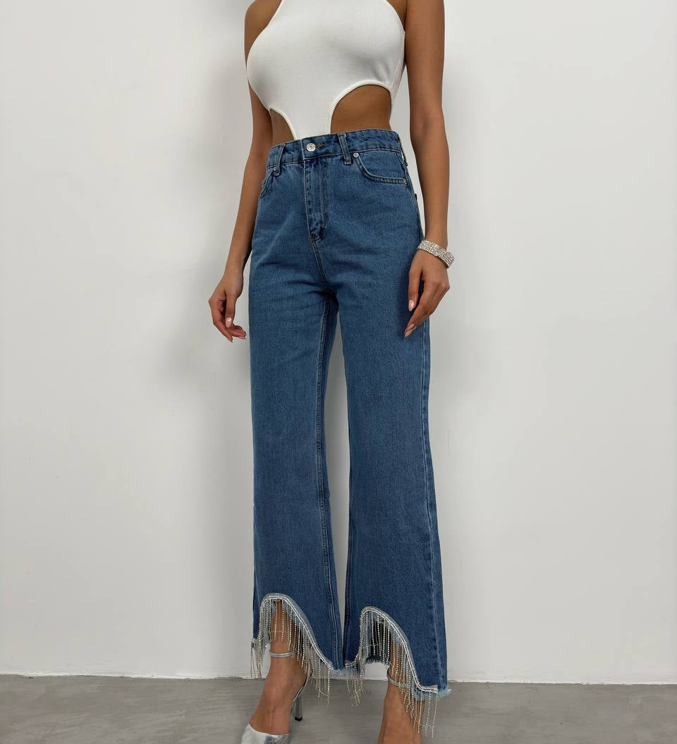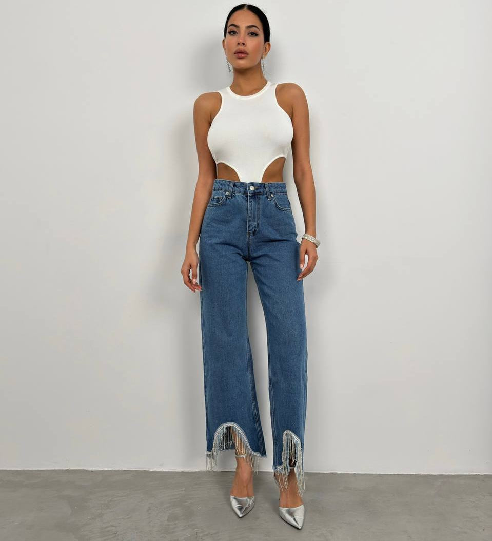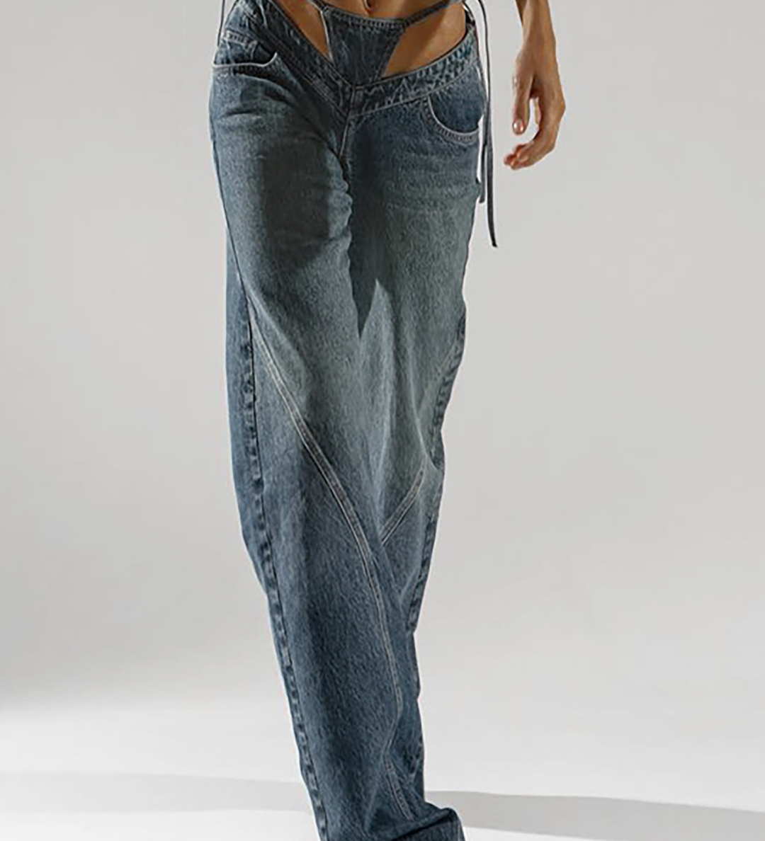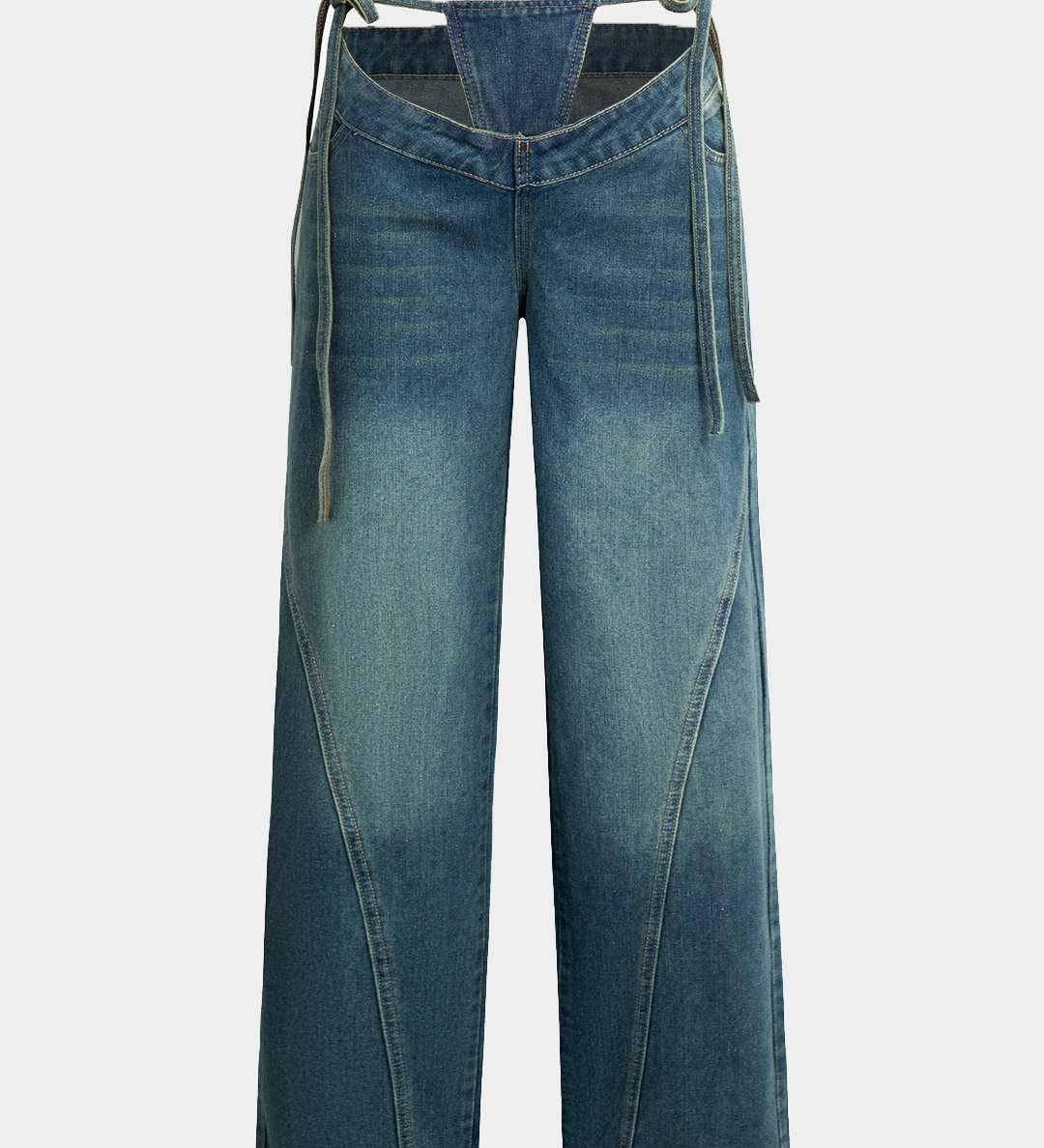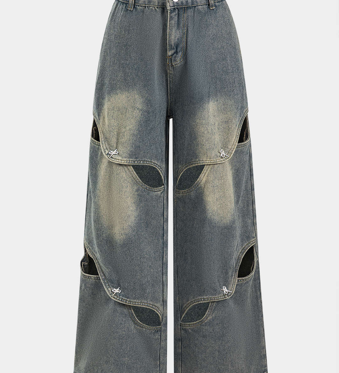 Elysia Lace-Embroidered Wide-Leg Jeans