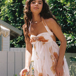 The Aniela™ Mini Dress is pure romance — featuring soft pastel florals, a halter neckline, and dreamy cascading layers of lightweight chiffon. Perfect for garden parties, summer brunches, or sipping rosé in the sunshine.