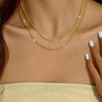 Elevate your elegance with the Runnea Glow Necklace, a radiant layered piece designed to shimmer with every movement. The delicate double-chain design catches the light beautifully, creating a subtle yet dazzling effect that enhances any outfit. Whether styled for a night out or layered with other favourites, this piece is all about effortless glamour.