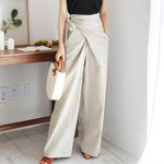 Breezy yet polished, the Arlowe Wrap Waist Wide-Leg Pants are the effortless staple your wardrobe’s been waiting for. Featuring a soft, high-rise fit with an elegant wrap-tie detail that cinches the waist, these pants blend the ease of linen-inspired texture with the refined tailoring of a structured silhouette.
