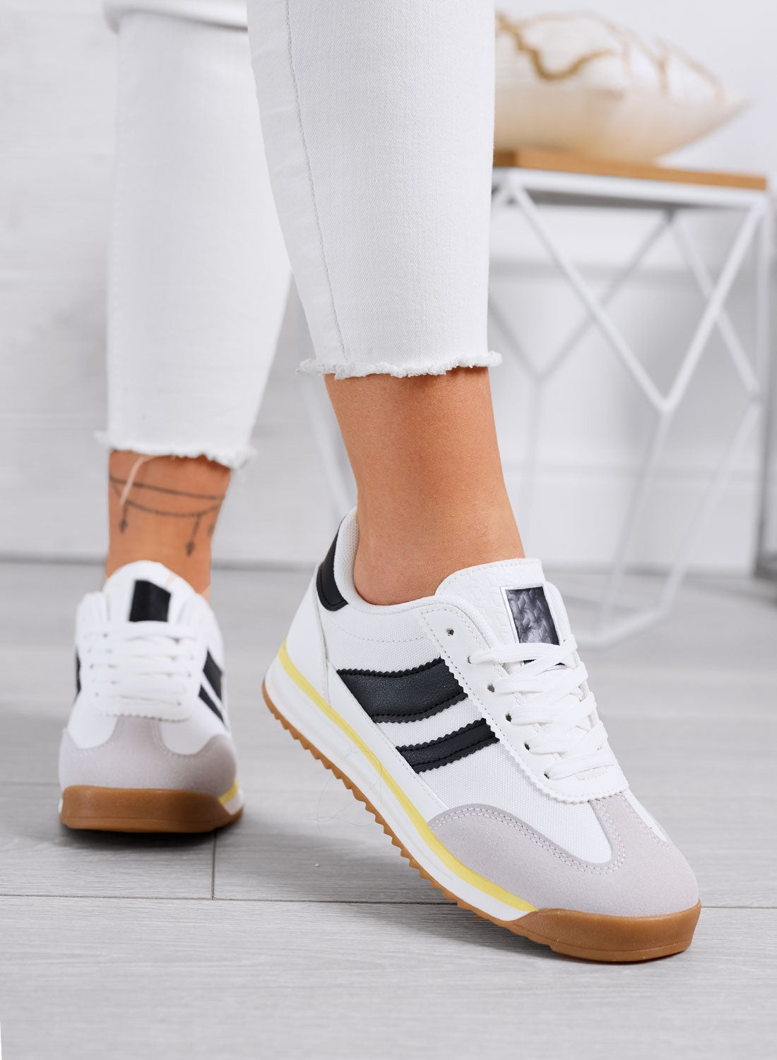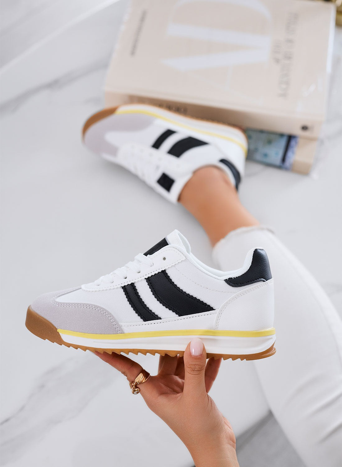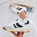 Alliant esprit sportif et allure mode, ces baskets blanches aux détails noirs apportent une touche rétro à vos tenues du quotidien. Légères et confortables grâce à leur conception en tissu, elles offrent un maintien agréable et une foulée stable grâce à leur semelle en caoutchouc.