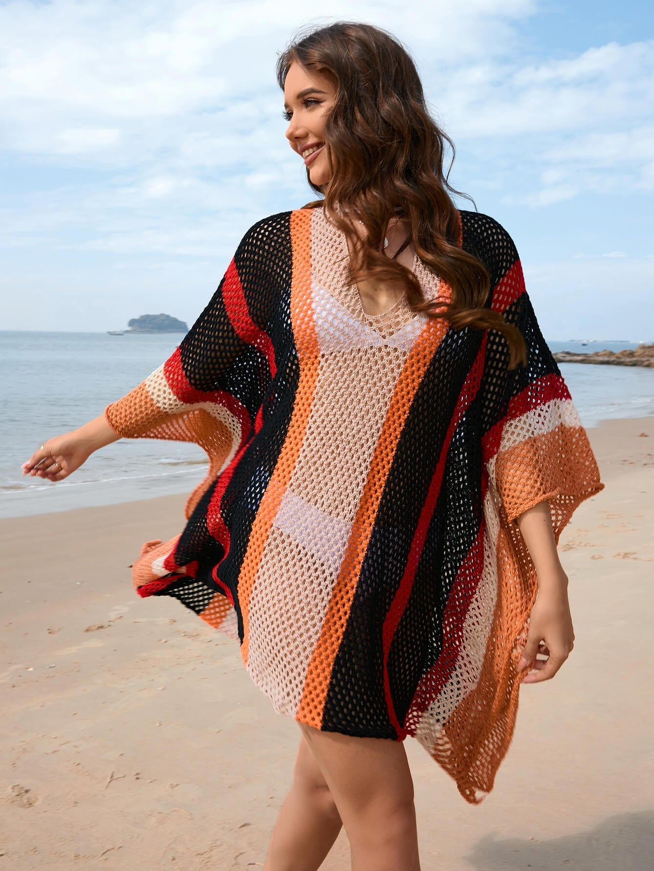 Capture the spirit of endless summer with the Solstice Shores Crochet Cover-Up, a lightweight, breezy layer perfect for beach days and poolside lounging. Featuring a striking mix of bold stripes and an airy open-knit design, this flowy silhouette moves beautifully with every step, offering effortless coverage without hiding your swimwear underneath.