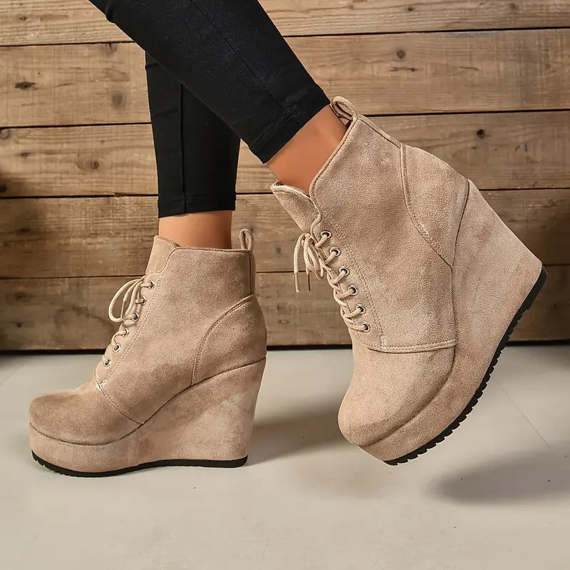 Ces bottes en daim confortables à plateforme associent élégance et modernité. Leur texture douce et leur semelle épaisse offrent un parfait équilibre entre style et confort. Un incontournable pour compléter vos looks avec une touche raffinée et tendance.