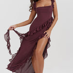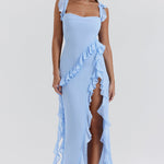 • Romantic Details: Soft ruffles and a high slit deliver the perfect blend of elegance and allure.