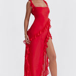 This dress embodies the perfect balance between sophistication and allure. The cascading ruffles and sleek silhouette create a fluid, feminine movement that turns heads without trying too hard. Designed for the modern woman who owns her elegance, it’s ideal for evening occasions, romantic dinners, or any moment that calls for a statement of quiet confidence.
