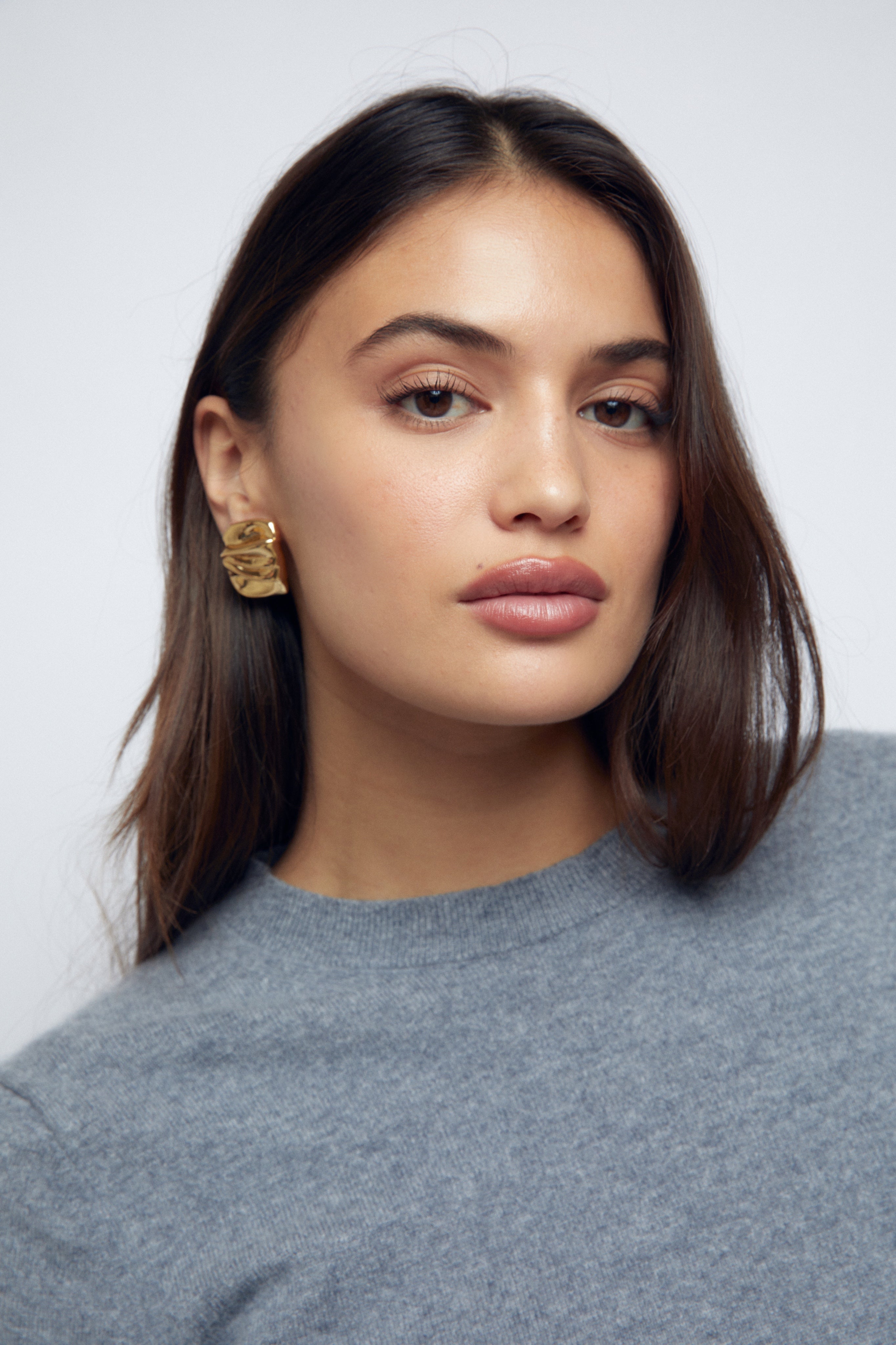 Exude elegance with the Golden Cascade Earrings. Designed with a unique, flowing silhouette reminiscent of a delicate cluster, these earrings shine in a luxurious gold finish, adding refinement and character to any outfit.