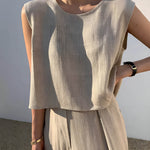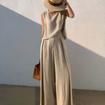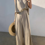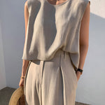 Channel effortless coastal sophistication with the Byron Bay Linen Set, your ultimate companion for chic comfort and laid-back elegance. Crafted from breathable, natural linen, this set features a relaxed sleeveless top with structured shoulders and stylish wide-leg trousers, capturing the carefree spirit of seaside living. Its understated neutral tones and flowing silhouette ensure a flattering fit perfect for sun-soaked days or casual evenings by the shore.