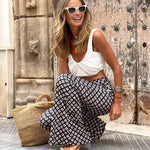 Style them with crop tops, sandals, and woven accessories for beachside lunches, holiday getaways, or sunny market strolls. The Capri Geo Print Flared Pants are perfect for when you want to feel fun, relaxed, and effortlessly chic.