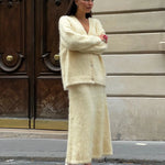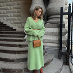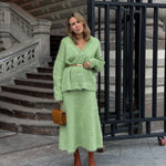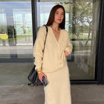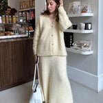 Elegant, minimal, and irresistibly soft, the Celeste Fluffy Knit Co-ord Set is the ultimate blend of comfort and sophistication. Featuring a slouchy V-neck cardigan with delicate button detailing and a matching skirt, this set is crafted from a luxuriously fuzzy knit that feels as dreamy as it looks. The relaxed fit and plush texture make it perfect for creating a chic, effortless silhouette without sacrificing comfort.