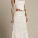 Exude soft glamour in the Celestia Lace Wrap Maxi Set, a romantic two-piece ensemble crafted from delicate floral lace with an ethereal finish. The sculpted wrap top features a flattering square neckline and structured bodice, perfectly paired with a flowing maxi skirt that skims the body and drapes effortlessly to the floor.