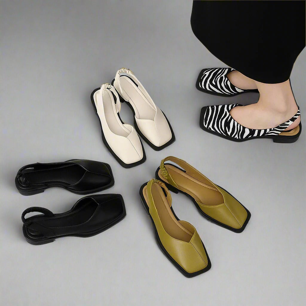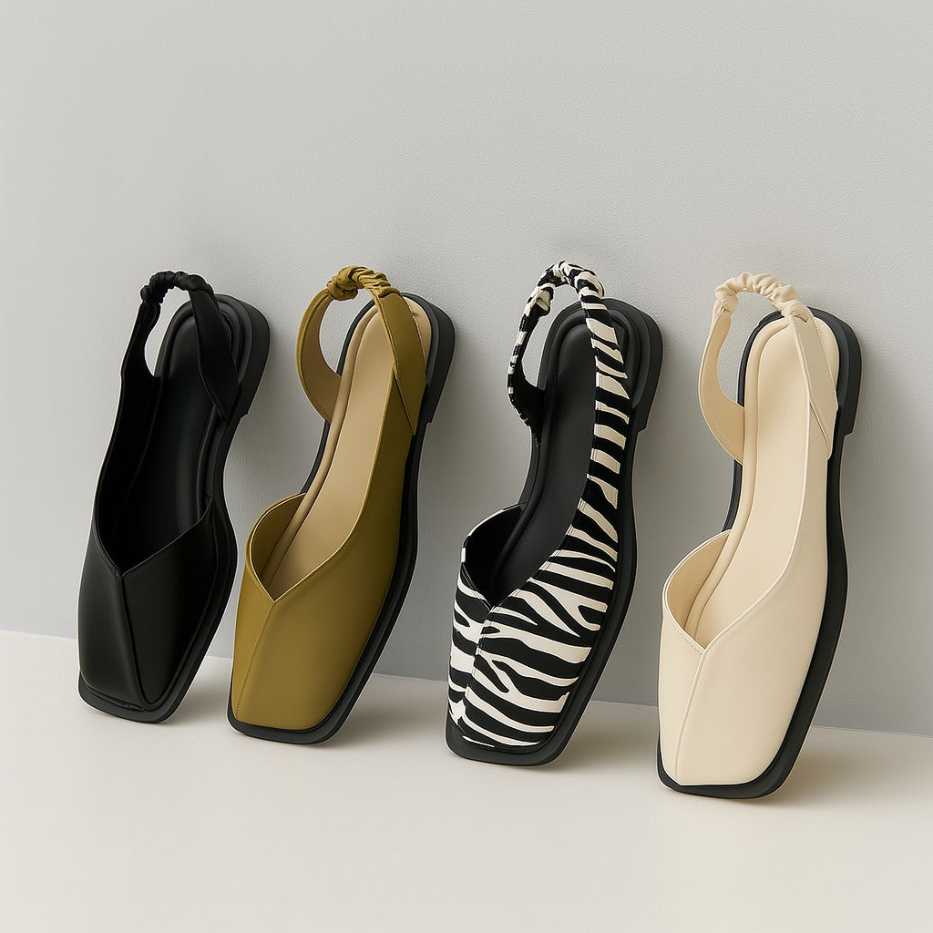 Dotées d'un bout carré contemporain, ces ballerines chics, idéales pour le printemps, allient style minimaliste et confort durable. Leur tige en cuir vegan haut de gamme, associée à un dos élastique extensible, assure un maintien optimal, tandis que leur semelle intérieure absorbant les chocs offre confort et élégance à chaque pas.