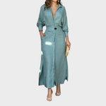 Turn heads wherever you go with this stunning white maxi dress. Designed for the modern woman, it combines timeless elegance with contemporary style. The button-down front and side slits add a subtle flair, while the cinched waist creates a flattering silhouette. Perfect for both daytime outings and evening events, this dress is a versatile addition to any wardrobe.