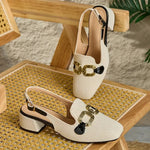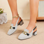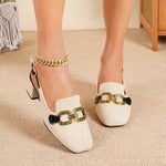 Chaussures élégantes avec dessus en tissu respirant, ornées d’un nœud décoratif et d’une chaîne dorée, parfaites pour allier style et confort au quotidien.