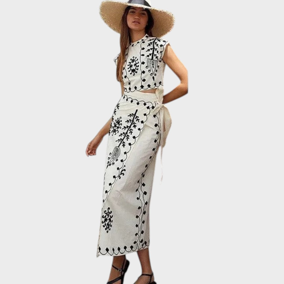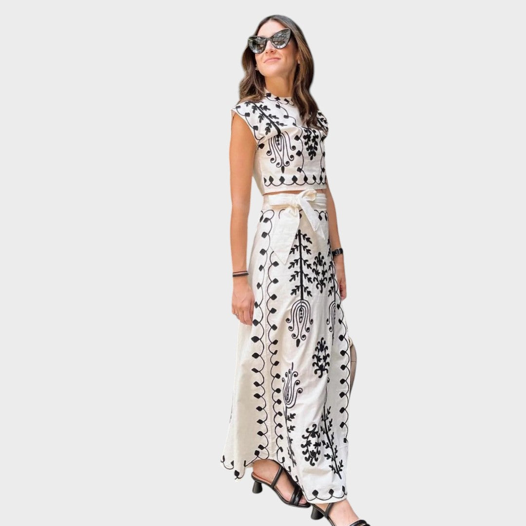 Beautifully tailored two-piece set with intricate embroidery