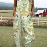 The Honeybee Bloom Jumpsuit captures the carefree spirit of countryside days with a whimsical twist. Adorned with soft green swirls, golden blossoms, and playful bees, this standout piece blends comfort and charm effortlessly. Its relaxed silhouette and nature-inspired pattern make it perfect for lazy weekends, farmer’s markets, or simply soaking up some sun. Finished with roomy pockets, adjustable straps, and a rollable hem, it’s your go-to for garden strolls and barefoot mornings.