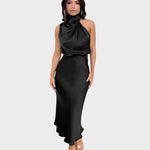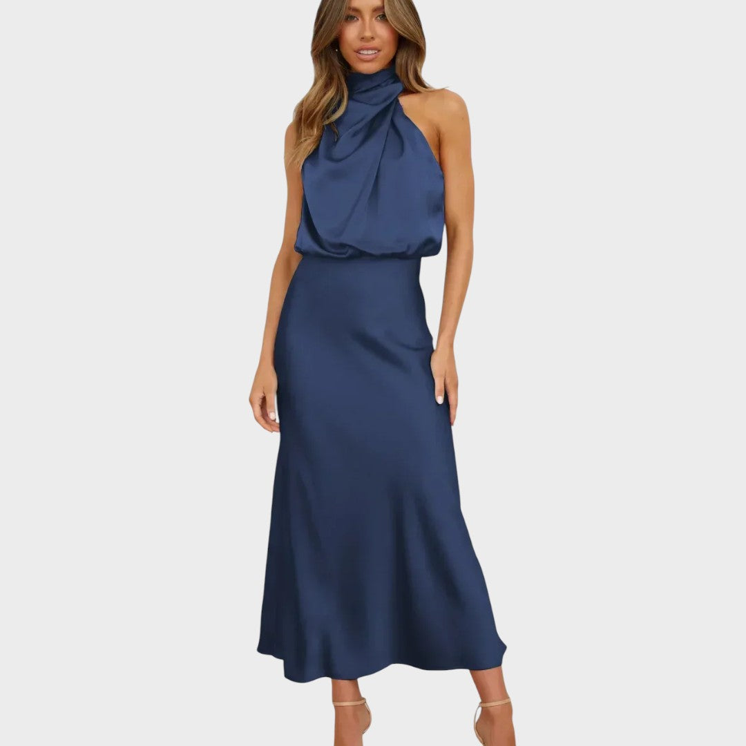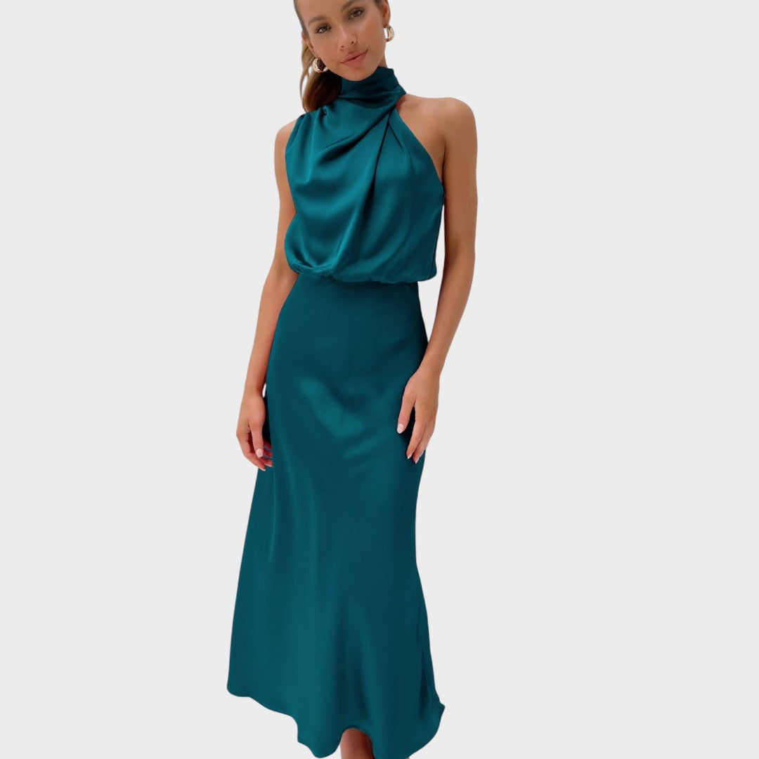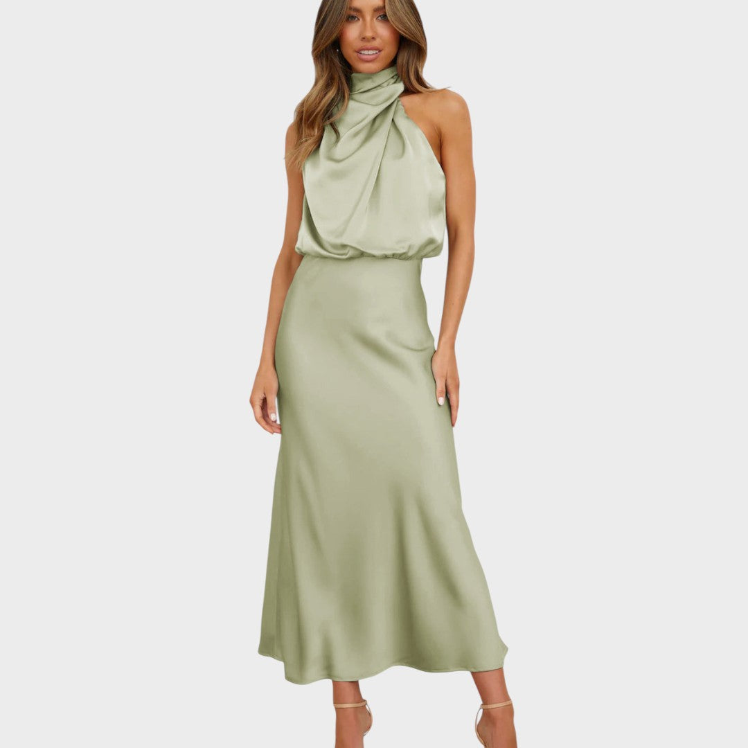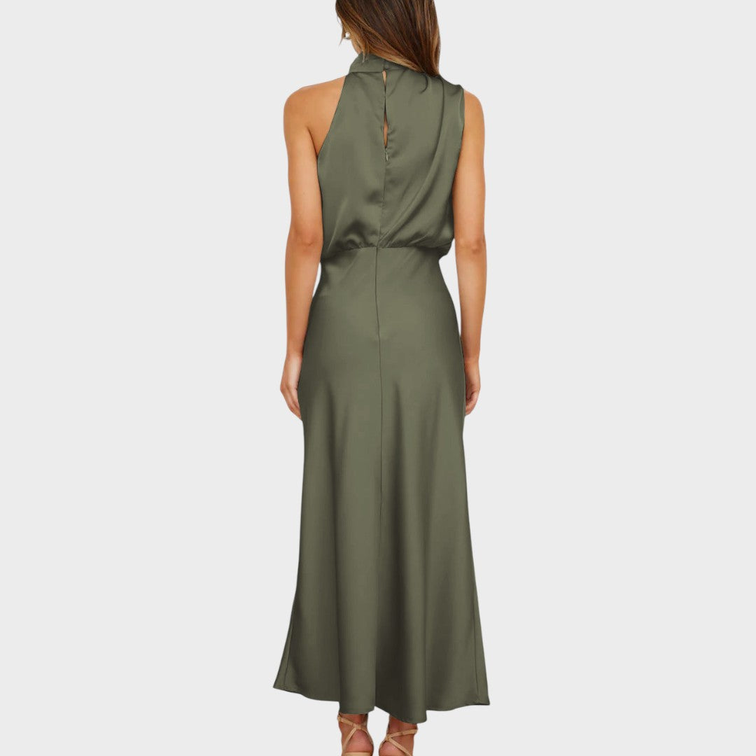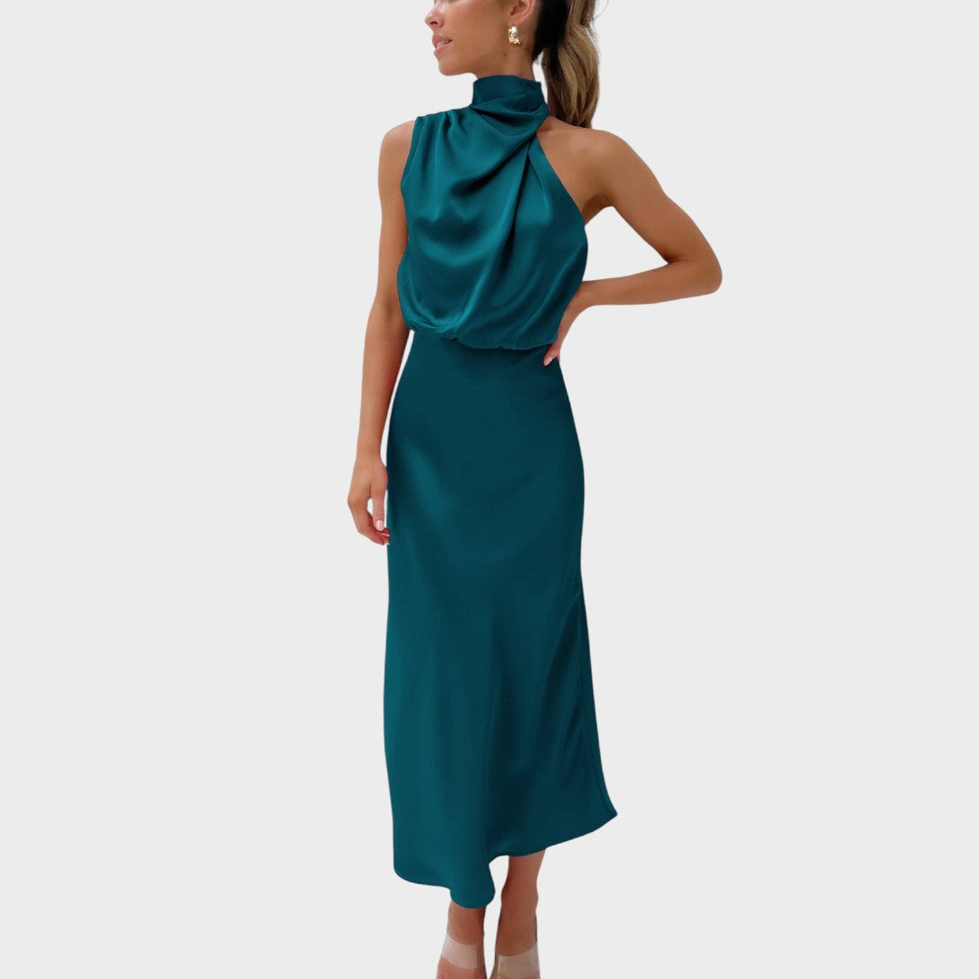 Draped high neckline for an effortlessly chic silhouette