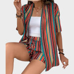 Stay effortlessly chic with this lightweight two-piece set. Featuring a flowy open shirt and matching drawstring shorts, it’s the ultimate blend of comfort and style. Perfect for brunch dates, weekend getaways, or laid-back afternoons, this set is your go-to for a polished yet relaxed spring look.
