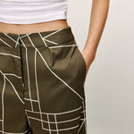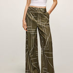 Add a playful edge to your wardrobe with the Luna Abstract Print Wide Leg Pants, featuring a bold geometric line design on a soft, flowy fabric. The high-rise fit and wide-leg silhouette offer effortless movement and a flattering, elongated look.