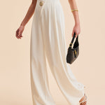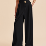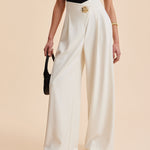 Step into effortless elegance with the Luna Grace Wide-Leg Trousers, designed with a high-rise waist, soft pleating, and a stunning gold statement button for a refined touch. The fluid wide-leg cut offers comfort and sophistication in equal measure.