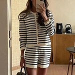 Chic, playful, and effortlessly stylish, the Marseille Stripe Knit Set brings a fresh twist to classic Parisian-inspired fashion. Featuring a soft knit texture, bold horizontal stripes, and gleaming gold-tone buttons, this co-ord set feels polished yet relaxed.
