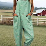 The Meadow Muse Jumpsuit brings a soft splash of charm to your laid-back days. Featuring a refreshing mint green base dotted with playful white daisy prints, this relaxed piece channels countryside calm with a touch of retro flair. With its easy fit, deep front pockets, and cuffable hems, it’s made for slow mornings, sunny strolls, and everything in between. Adjustable straps ensure you stay comfy, whether you're layering it with a tank or a tee.