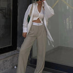 Redefine your everyday staples with the Milan Fold-Detail Wide Leg Pants, where tailored structure meets runway flair. Featuring a striking layered waistband, subtle pleats, and a clean wide-leg cut, these trousers elevate minimalism with a bold twist. The flattering high-rise fit cinches at the waist, while the draped silhouette flows effortlessly from hip to hem.