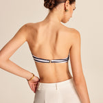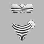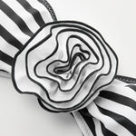 Make a statement with the Monaco Bloom Bikini Set, a striking blend of classic stripes and bold floral accents. Designed for the modern sophisticate, this bandeau-style top features a structured fit with a dramatic rosette centerpiece, adding a touch of couture-inspired elegance. The matching high-cut bottoms mirror the design with a side-placed rosette, creating a balanced yet eye-catching silhouette.