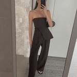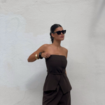 Chic, minimal, and effortlessly polished, the Monaco Strapless Wide Leg Set is made for those sleek city moments. Featuring a structured strapless top with an adjustable tie waist and flowy wide-leg trousers, it creates a beautifully balanced silhouette with a modern edge.