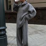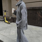 Relaxed, effortless, and made for off-duty days, the Northmere Knit Lounge Set is your go-to for cosy, elevated comfort. Featuring a slouchy half-zip pullover and matching wide-leg pants, this set combines a soft ribbed texture with an oversized silhouette that moves with you from coffee runs to casual afternoons.