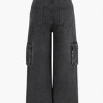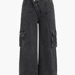 Step up your denim game with the Nova Cargo Wide-Leg Jeans. Crafted from a sleek, black denim, these jeans feature a bold, high-waisted cut with oversized cargo pockets for added edge and functionality. The wide-leg silhouette provides a relaxed, comfortable fit, while the button and snap details give these jeans a unique, modern twist.