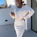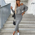 Slip into the Off-Duty Luxe Ribbed Midi Set — your effortless answer to elevated casualwear. This matching ensemble features a soft, body-hugging midi skirt and a relaxed drop-shoulder pullover with a flirty off-the-shoulder neckline. Made in a cosy ribbed fabric, it blends laid-back vibes with flattering cuts that feel polished but never overdone.
