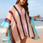 Capture the spirit of endless summer with the Solstice Shores Crochet Cover-Up, a lightweight, breezy layer perfect for beach days and poolside lounging. Featuring a striking mix of bold stripes and an airy open-knit design, this flowy silhouette moves beautifully with every step, offering effortless coverage without hiding your swimwear underneath.