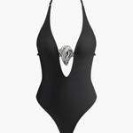 Perfect for luxe getaways and poolside glamour, the Noir Empress Plunge Swimsuit is the ultimate fusion of sophistication and daring allure.
