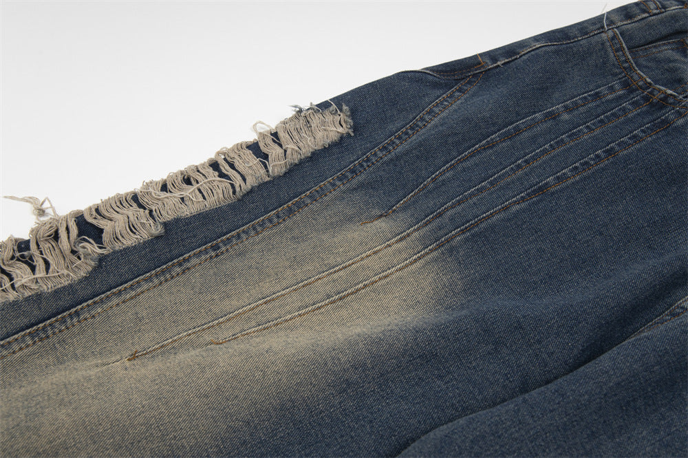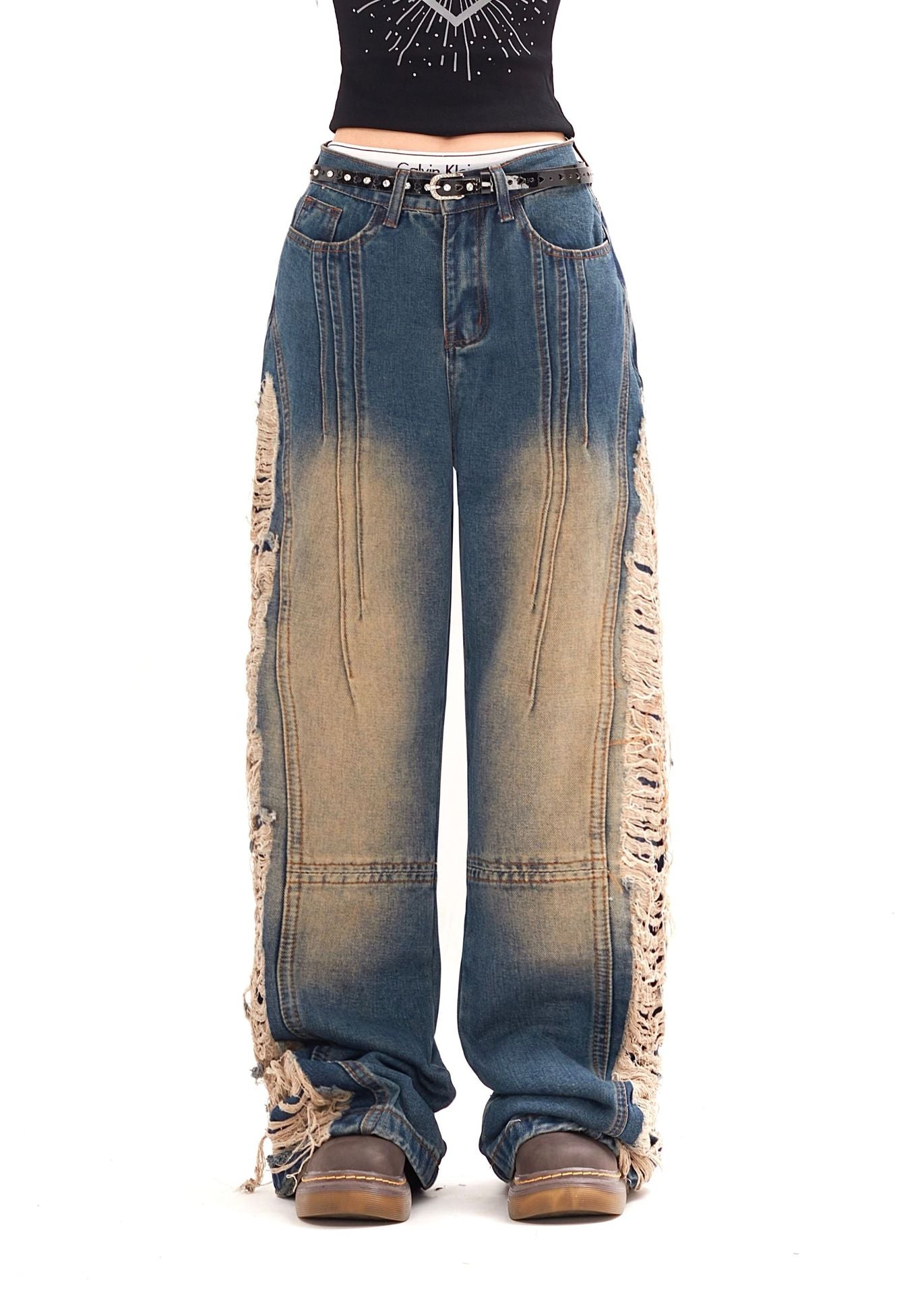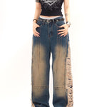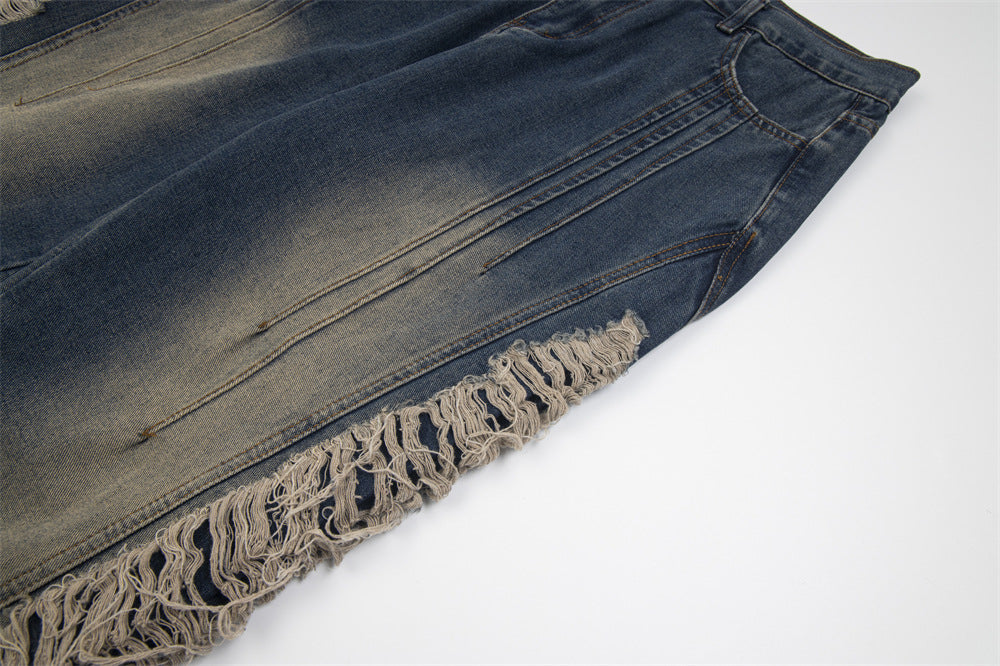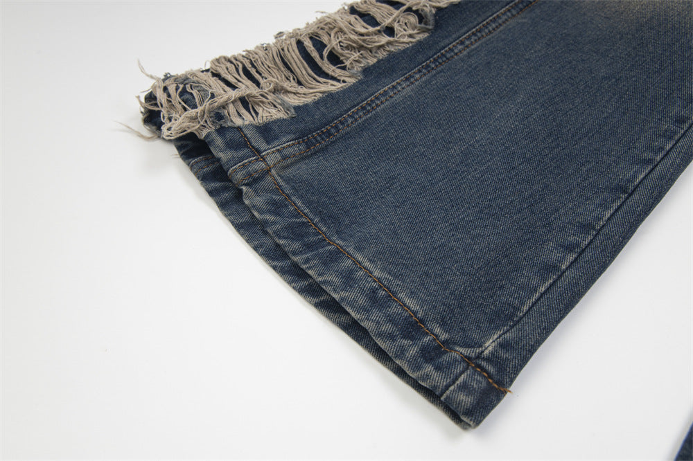 Turn heads with the Rebel Shred Contrast Fringe Jeans — a bold denim moment made for rule-breakers. These wide-leg jeans feature distressed fringe panels running down both sides, giving you that raw, grunge-meets-glam aesthetic. The heavy wash fade and detailed stitching add depth and dimension to the edgy silhouette.