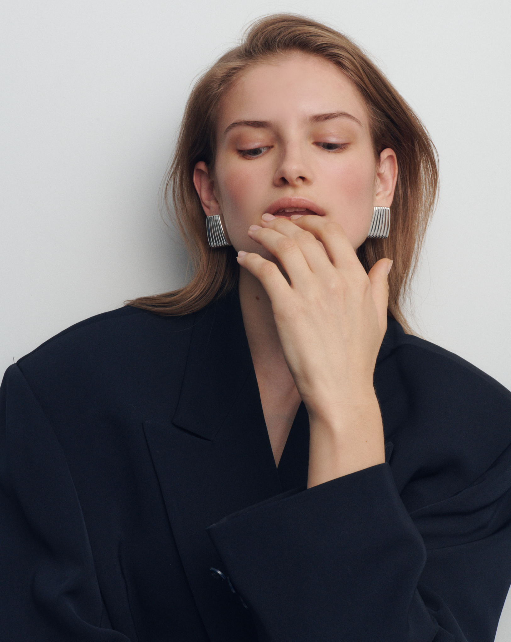 Make a bold impression with the Silver Aura Statement Earrings. Featuring a striking ribbed design, these earrings blend modern sophistication with timeless elegance—perfect for those who love to stand out with refined accessories.