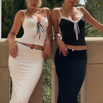 Flirty, feminine, and effortlessly chic — the Riviera Charm Two-Piece Set is made for sun-drenched days and balmy evenings. Featuring a fitted cami top with delicate lace trim and bow details, paired with a sleek, high-waisted midi skirt, this set creates a perfectly polished yet playful silhouette.