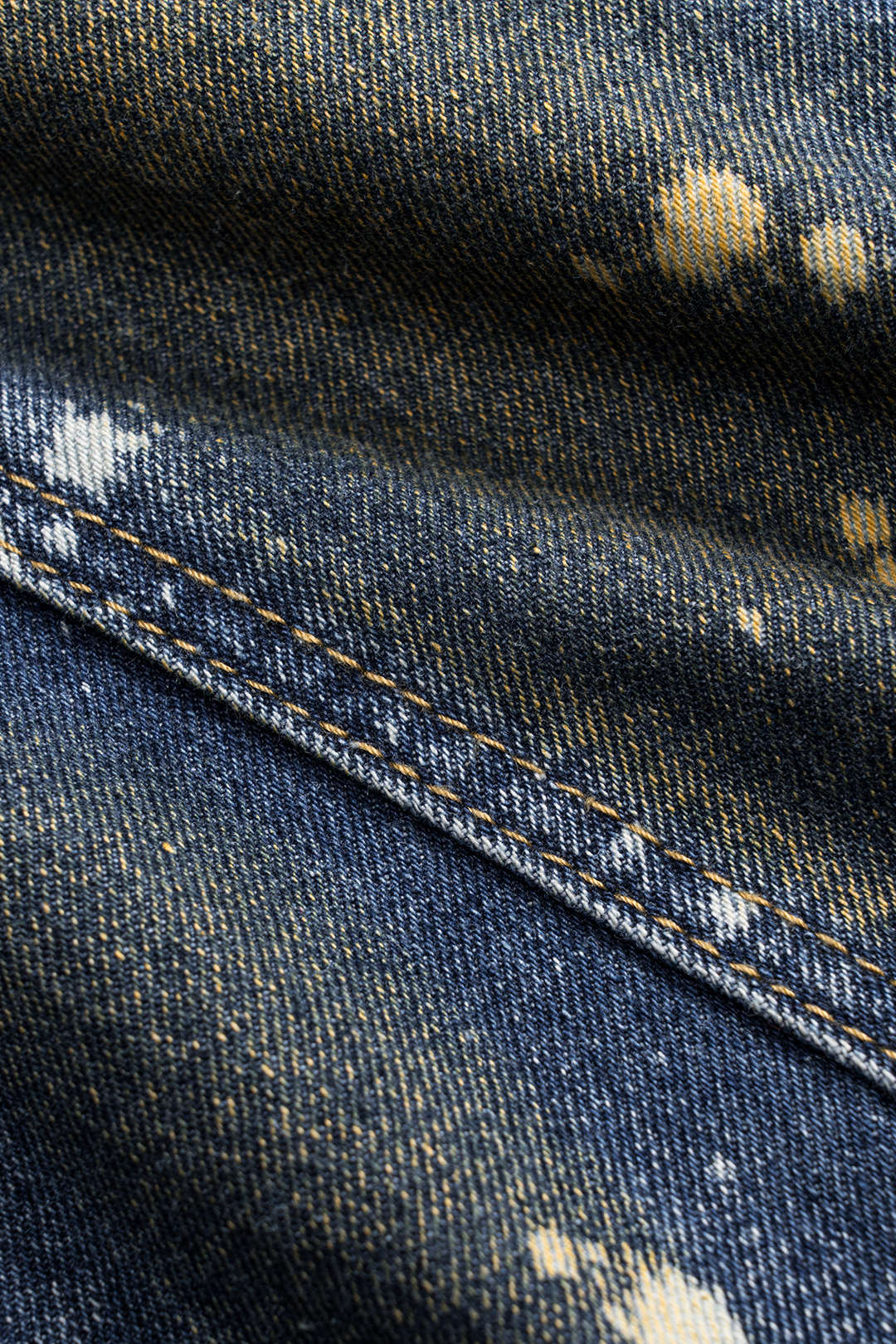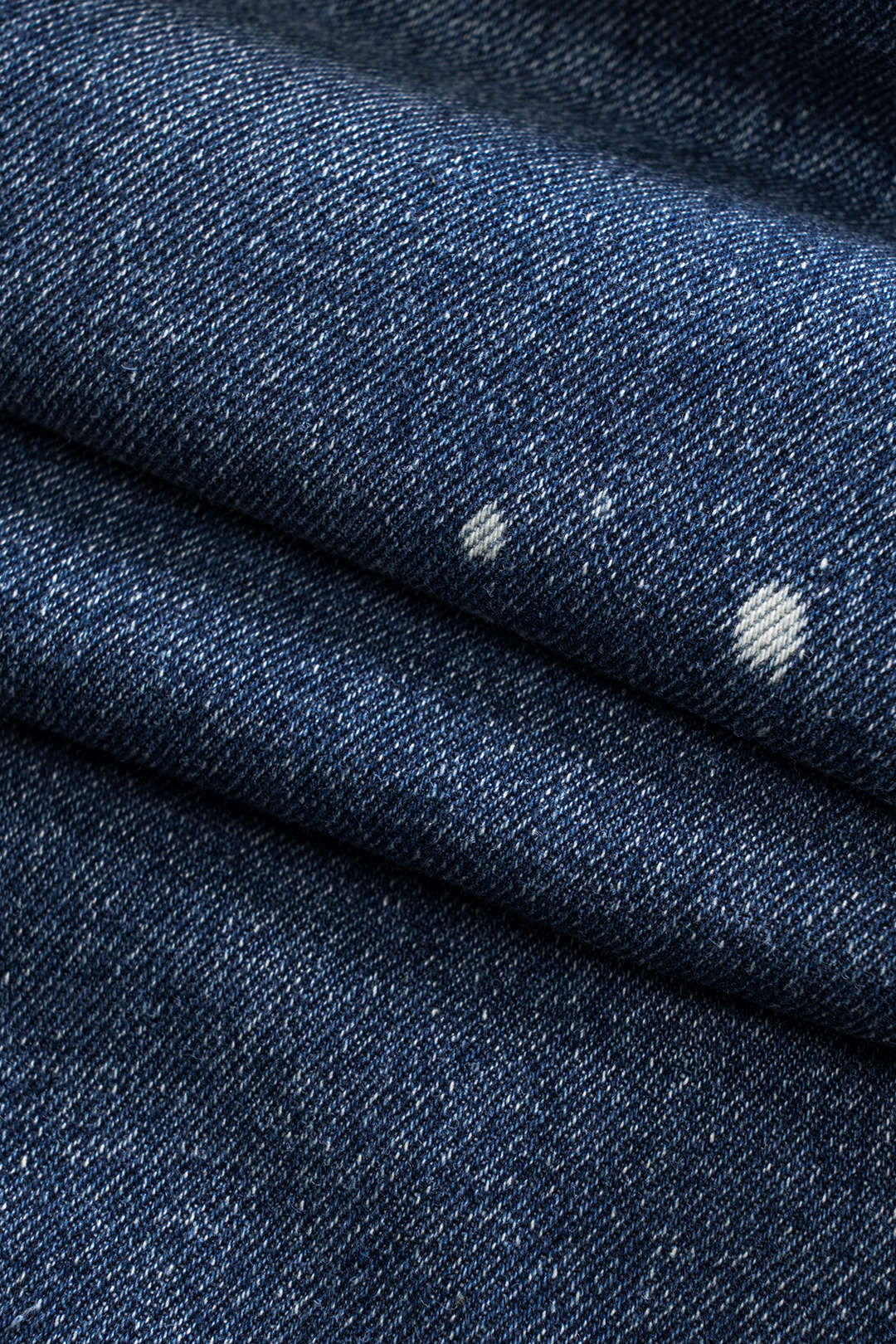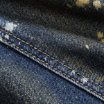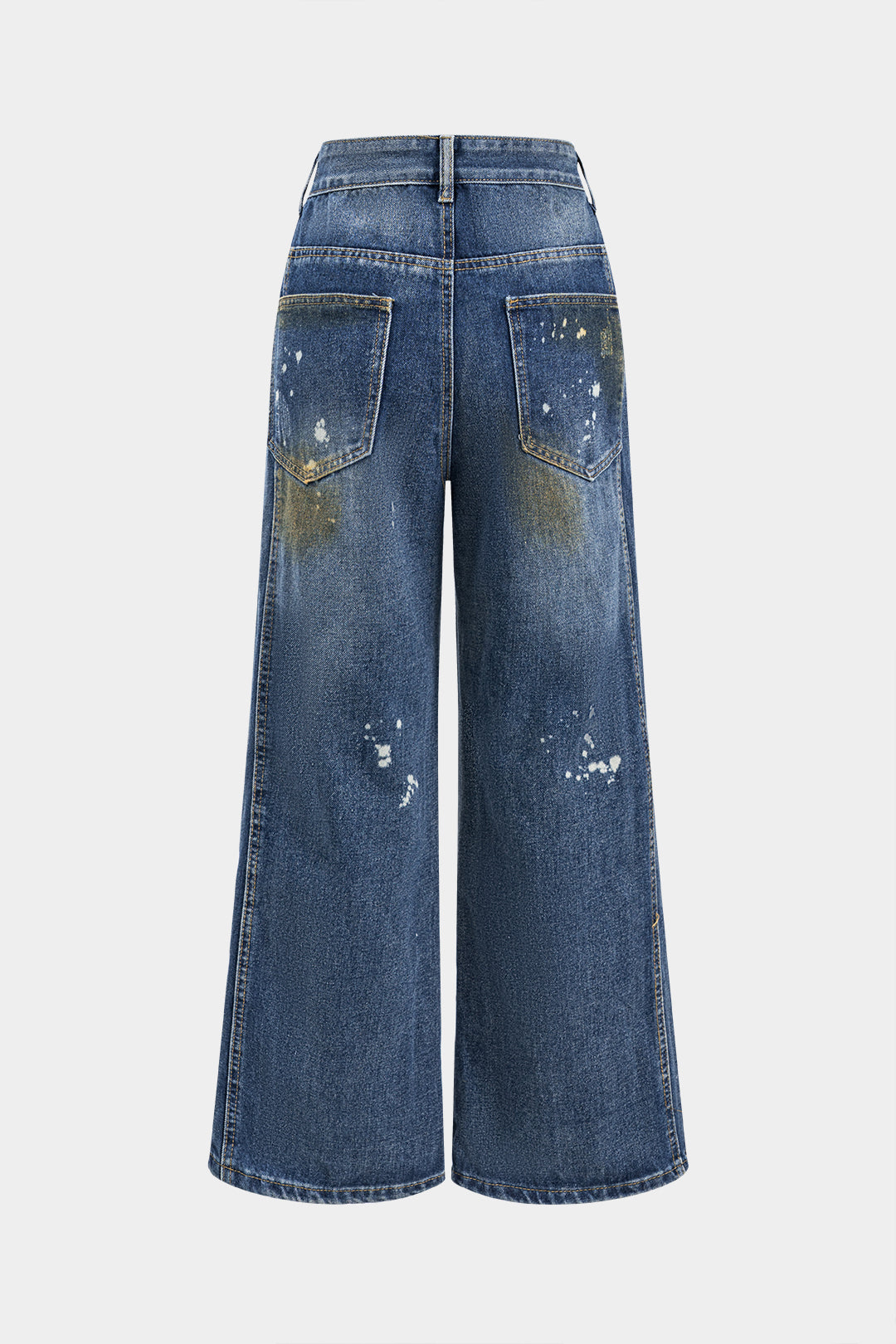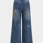 Add a touch of artistic flair to your denim collection with the Sable Paint-Splattered Wide-Leg Jeans. These jeans feature a distressed, wide-leg silhouette with a playful paint-splattered design, creating a unique and edgy look. The bold splashes of yellow and white against the blue denim make each pair one-of-a-kind.