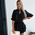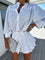 Float through sun-soaked days in the Seabreeze Ruffle Lounge Set — a dreamy two-piece designed for effortless holiday styling. Featuring a lightweight button-up blouse with voluminous sleeves and matching ruffle-tiered shorts with a cinched waist, it’s the perfect blend of laid-back and polished.