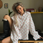 Start your day sweetly with the Strawberry Sunday Lounge Set, a breezy and playful co-ord that’s perfect for lazy mornings and cosy afternoons. Featuring an oversized button-up shirt and flowy high-waisted shorts, this set is sprinkled with charming strawberry prints for an irresistibly cute finish.