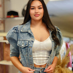 Sydney Puff Sleeve Cropped Denim Jacket