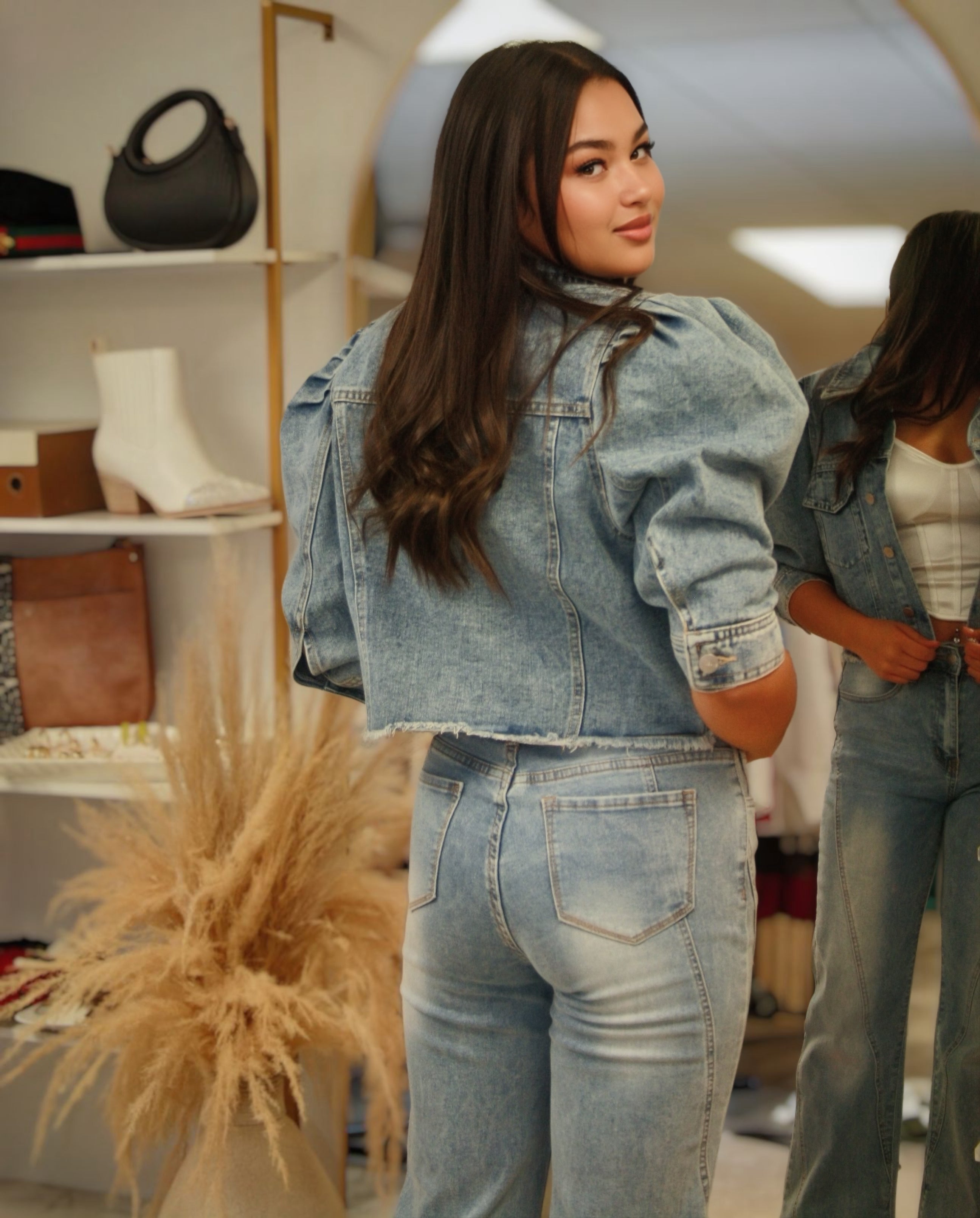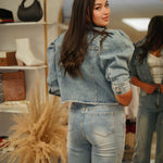 Layer it over a corset, pair it with wide-leg jeans, or contrast it with soft skirts — the Sydney Puff Sleeve Cropped Denim Jacket is your go-to for elevating basics with bold attitude.
