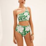 Whether you're lounging under palm trees or taking a dip in crystal-clear waters, the Tropical Breeze One-Shoulder Bikini is your go-to for a stylish and confident summer look.