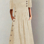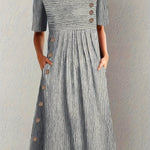 Bring effortless charm to your warm-weather wardrobe with this Striped Summer Dress. Designed in a lightweight, breathable fabric with a flattering A-line cut, it’s perfect for those sunny days when comfort and style go hand in hand. The playful stripes paired with statement buttons give it a touch of coastal chic – ideal for beach strolls, brunch with friends, or casual afternoons in the city.